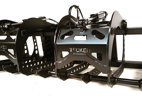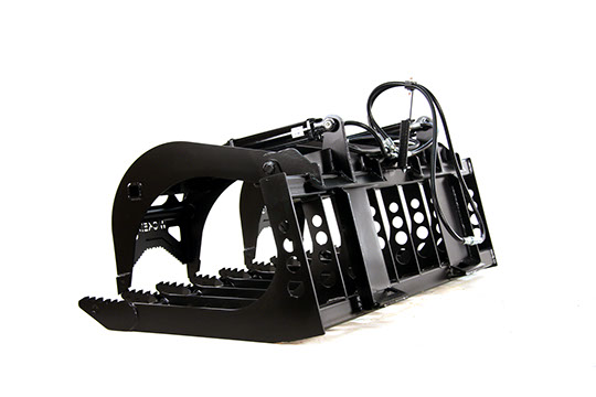 This awesome root grapple is available with 1 or 2 lids, in 53 or 77 inch widths. This grapple is designed for larger compact tractors, and keeps the weight down under 700 lbs. The laser cut quality makes this a great looking root grapple made from 3/8" A572 steel. The hydraulic cylinders have a 2" bore and a 10" stroke creating lots of clamping force. The serrated and laminated end tines are a stronger grade 80 steel to keep them from bending when digging roots below grade. The hydraulic hoses are a standard 58" long with 1/2" ag couplers, but maybe extended or made with different couplers if desired.